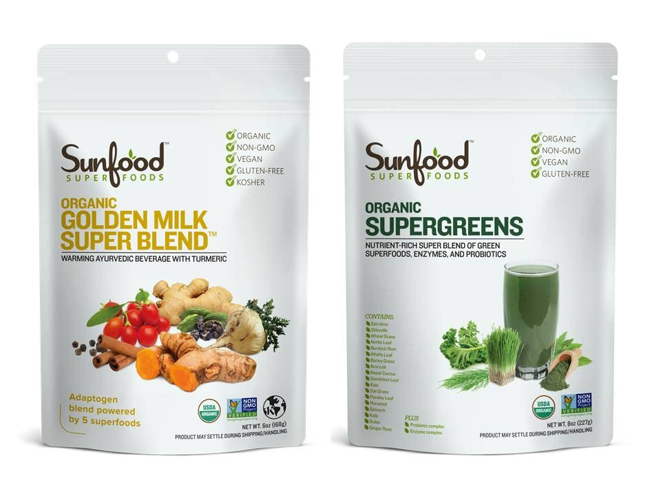 Get 2 of Sunfood’s favorite products and save! Golden Milk Super Blend + Organic Supergreens