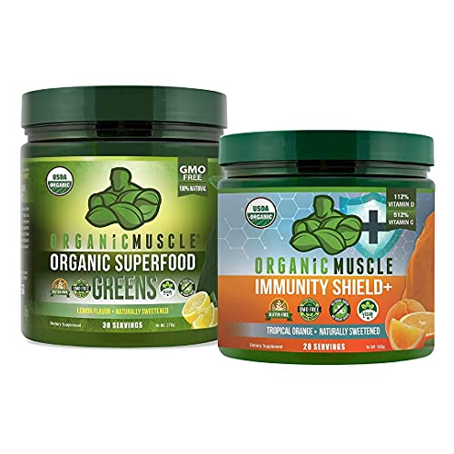 Organic Muscle Bundle – Immune Support Supplement (Tropical Orange) + Superfood Greens Powder for Health & Vitality…