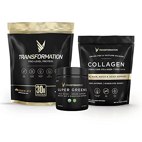 Transformation Chocolate Protein Powder | 30G Multi-Protein Superblend+ Grass-Fed Hydrolyzed Collagen Peptides Powder…