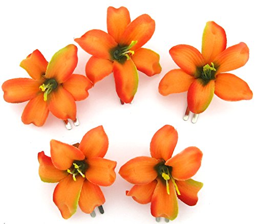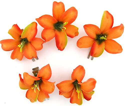 2″ Tropical Orange Lily 5 Piece Lot Silk Flower Hair Clips