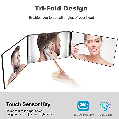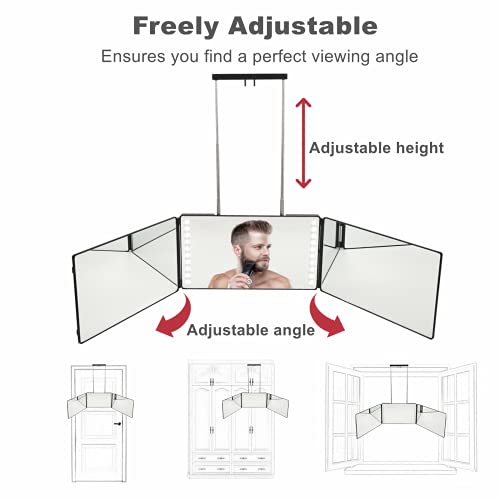 3 Way Mirror with LED Light,360° Mirror,Trifold Portable Barber Mirror,Height Adjustable Hanging Mirror for Self Hair…