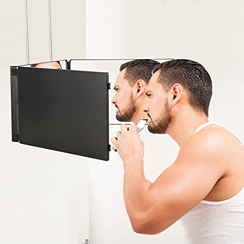 The three-view mirror allows you to adjust the viewing angle freely and comfortably. Enables you to see more of your face and head than a normal mirror. Convenient for men’s haircuts, beard grooming, or women for coloring, styling, etc.