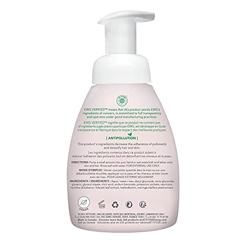ATTITUDE 2-in-1 Natural Hair and Body Foaming Wash for Baby, EWG Verified Shampoo, Hypoallergenic Bath Soap, Fragrance…