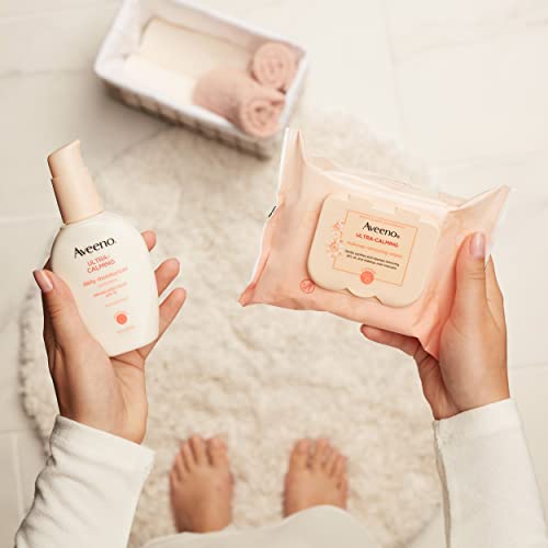 Aveeno Ultra-Calming Makeup Removing Facial Cleansing Wipes with Calming Feverfew Extract, Oil-Free Soothing Face Wipes…