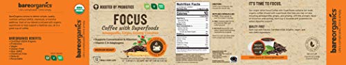 Focus Coffee: BareOrganics Focus Coffee blend contains fair-trade medium roast coffee ground from Arabica beans for superior quality and taste, fortified with whole organic nutrients to keep you sharp and focused throughout the day.