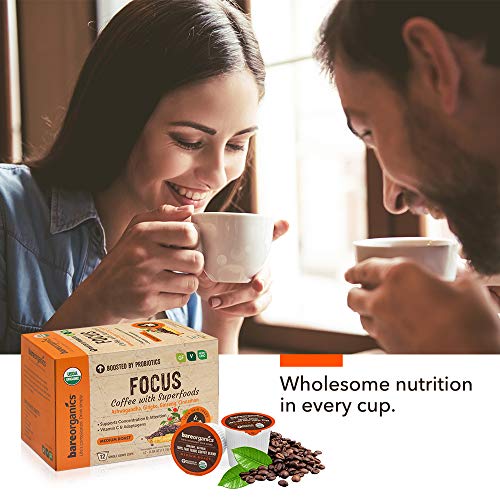 BareOrganics 13180 Focus Coffee with Superfoods, Organic Probiotic Coffee, 10 Single Serve Cups
