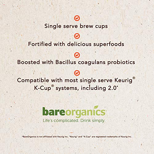 Superfood Infused Coffee: BareOrganics strives to deliver wholesome, simple nutrition without GMOs, chemicals & other harmful additives. Our K-Cup blends incorporate nutritious superfoods to help you think, perform & feel your absolute best.