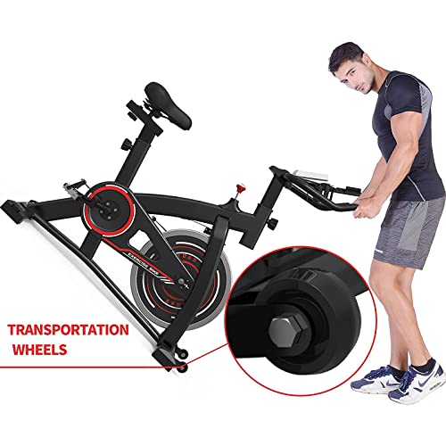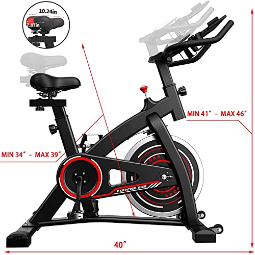 Smooth Stationary Ergonomic High Reinforcement Exercise Bike:The sturdy steel frame,300 Pounds maximum user weight guarantee the stability while cycling.The belt driven system provides a smoother and quieter ride than chain transport. It won’t disturb your neighbors or sleeping kids. The highly dense sponge on the backrest and seat of the exercise bike offers comfortable and ergonomic cushioning to relieve your pressure.