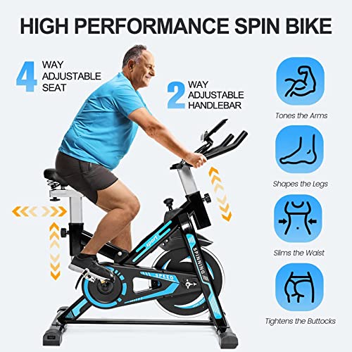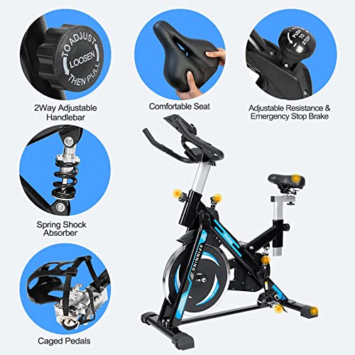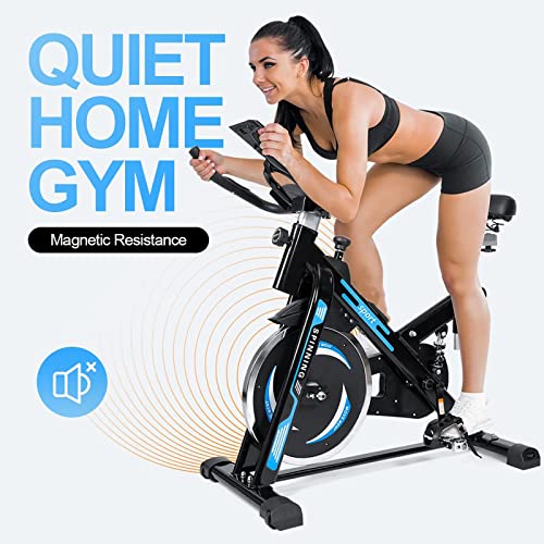 Smooth Stationary Ergonomic High Reinforcement Exercise Bike:The sturdy steel frame,300 Pounds maximum user weight guarantee the stability while cycling.The belt driven system provides a smoother and quieter ride than chain transport. It won’t disturb your neighbors or sleeping kids. The highly dense sponge on the backrest and seat of the exercise bike offers comfortable and ergonomic cushioning to relieve your pressure.