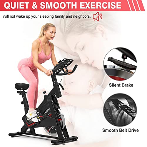 Smooth Stationary Ergonomic High Reinforcement Exercise Bike:The sturdy steel frame,300 Pounds maximum user weight guarantee the stability while cycling.The belt driven system provides a smoother and quieter ride than chain transport. It won’t disturb your neighbors or sleeping kids. The highly dense sponge on the backrest and seat of the exercise bike offers comfortable and ergonomic cushioning to relieve your pressure.
