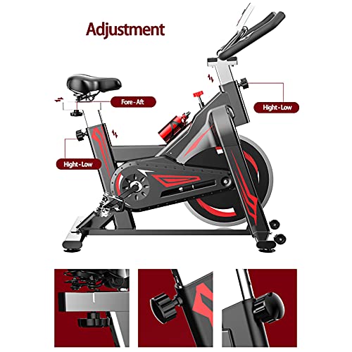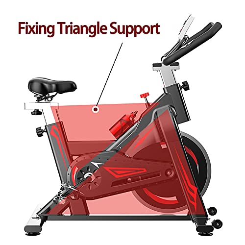 Smooth Stationary Ergonomic High Reinforcement Exercise Bike:The sturdy steel frame,300 Pounds maximum user weight guarantee the stability while cycling.The belt driven system provides a smoother and quieter ride than chain transport. It won’t disturb your neighbors or sleeping kids. The highly dense sponge on the backrest and seat of the exercise bike offers comfortable and ergonomic cushioning to relieve your pressure.