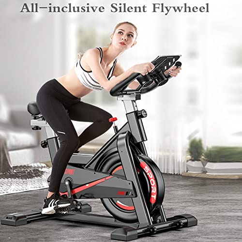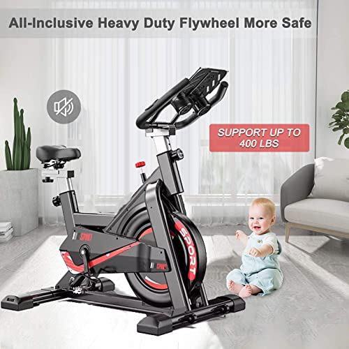 Smooth Stationary Ergonomic High Reinforcement Exercise Bike:The sturdy steel frame,300 Pounds maximum user weight guarantee the stability while cycling.The belt driven system provides a smoother and quieter ride than chain transport. It won’t disturb your neighbors or sleeping kids. The highly dense sponge on the backrest and seat of the exercise bike offers comfortable and ergonomic cushioning to relieve your pressure.