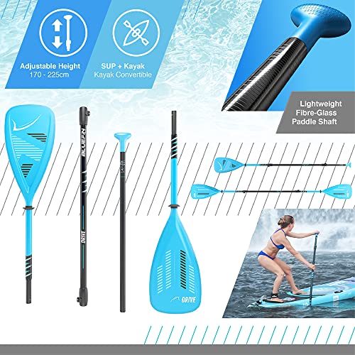 DURABLE TRAVEL SUP BACKPACK & LIGHTWEIGHT FIBREGLASS PADDLE – The most comfortable SUP backpack available with loads of extra padding & super wide straps. Our 2 piece paddle has an ergonomic fibreglass shaft weighing almost 45% less than standard SUP paddles. No flutter polyurethane composite blade is impossible to chip or damage. Both float!