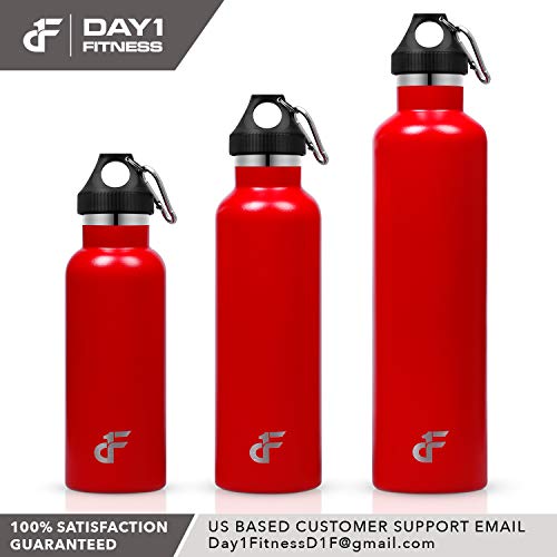 Day 1 Fitness Stainless Steel Water Bottle Standard Mouth, Carabiner Clip (16, 24, or 32oz) 3 Size, 8 Color, and Multi…
