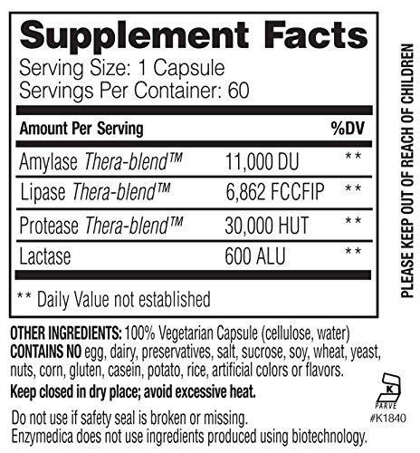 Natural enzyme support with thera-blend (lipase, amylase and protease), a fast-acting combination of multiple enzyme strains that work at various ph levels