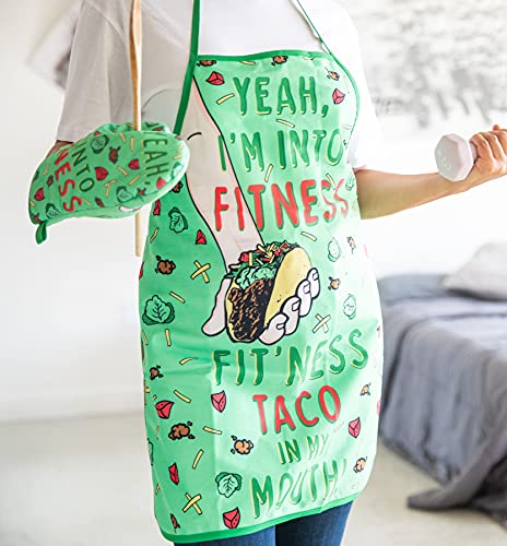 Fitness Taco Funny Kitchen Apron and Oven Mitts Humorous Gym Graphic Novelty Cooking Accessories