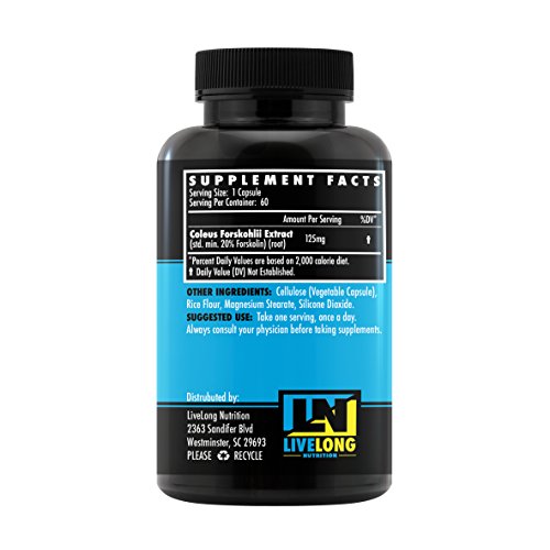 PHARMACEUTICAL-GRADE FORSKOLIN: Ultra Potent Forskolhii extract at the recommended 125mg dose. This is not a blend, it is only forskolin for easy dosing. Coleus Forskohlii, one of the first brands to sell on Amazon.