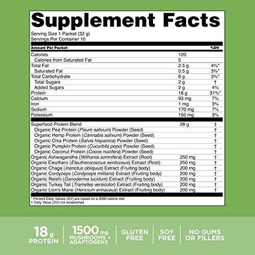 IMMUNE SUPPORT SUPERFOOD POWDERS: Every scoop of this low carb protein powder also has 1000mg of functional mushrooms (chaga extract, reishi extract, turkey tail extract, cordyceps extract, and lion’s mane extract), and 500mg adaptogens (ashwagandha and eleuthero) for immune and health support