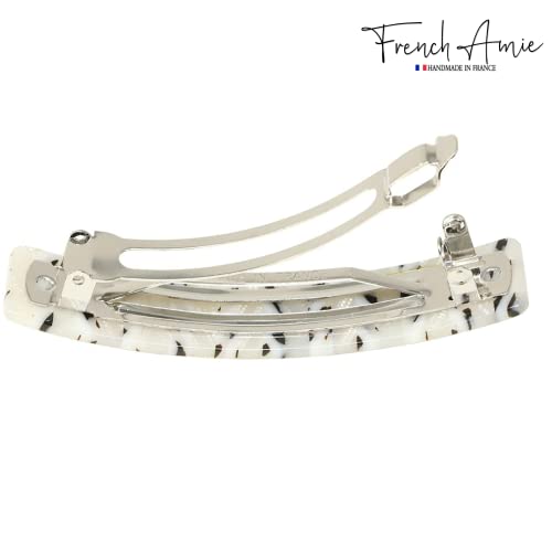 French Amie Oblong Handmade 3.5″ Celluloid Automatic Hair Clip Barrette French Hair Clip for Girls Strong Hold Hair Clips for Women No Slip Durable Paris Hair Accessories, Made in France (Victory Ivory)