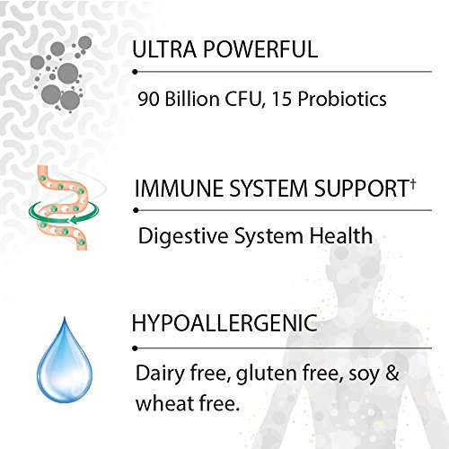 POWERFUL DAILY COLON AND IMMUNE SYSTEM SUPPORT: Renew flora in the gut with 90 Billion live cultures from 15 diverse probiotic strains including Lactobacillus acidophilus, L. plantarum, L. rhamnosus, Bifidobacterium lactis, B. longum, and more