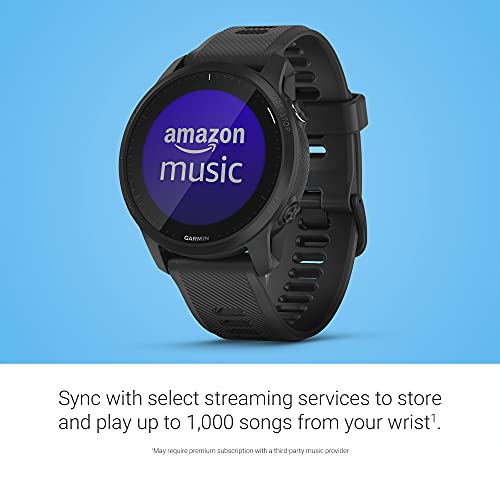 Bring music for every mile by downloading from music services (may require premium subscription with a third-party music provider) such as Amazon Music, Deezer, Spotify and more to easily store and play up to 1,000 songs from your wrist when paired with compatible headphones