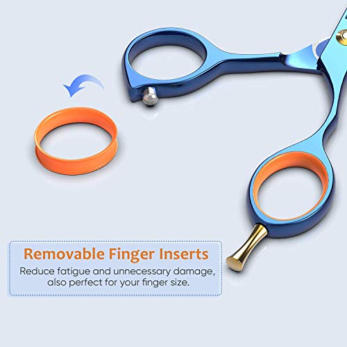 ✄ Comfortable Handle Design – Non-slip handle, ergonomic shape with detachable finger rest for comfort allowing relax cutting. Prevents strains on your fingers, wrists and arms caused by repetitive motion when cutting hair.