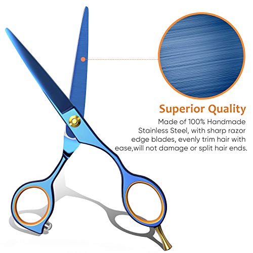 ✄ Professional Sharp Blades – Razor edge hair cutting scissors with hand-sharpened cutting tips to evenly trim hair with ease. You’ll achieve flawless results every time without any damage, split ends or pulling hairs, perfect for dry or wet fringe, bang, eyebrow, eyelash, mustache, beard, sideburns trimming and short hair cutting.