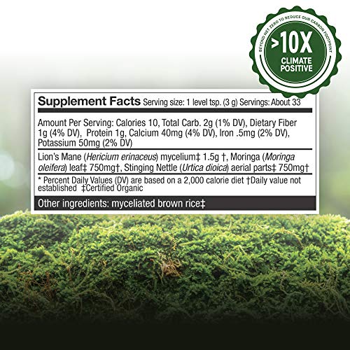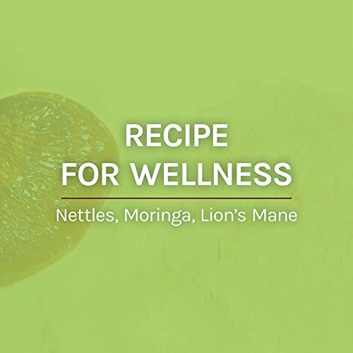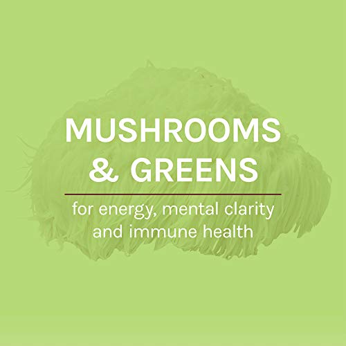 Mushrooms & greens: Crafted with a nutritionally-charged blend of moringa, stinging nettle and 1500 mg of Lion’s Mane mushroom mycelium