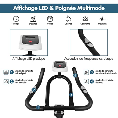 Functional LCD Monitor: The exercise bike features a multifunctional LCD monitor, which clearly shows your real-time fitness data, including time, speed, distance, calories, and heart rate. And you can quickly test out your heart rate through the pulse sensor on the handlebars. Additionally, an aluminum kettle is included for you to drink water with convenience.