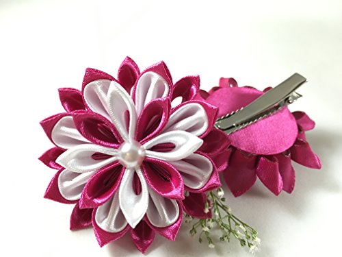 HANDMADE Kanzashi Flower Hair Clips. With 1.77 cm inch and 2.36 inch bows.