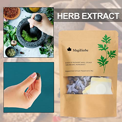 MagiHerbe Mugwort Navel Sticker,30PCS Wormwood Essence Pills and 30PCS Belly Patch for Men and Women