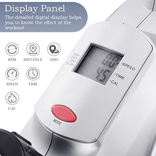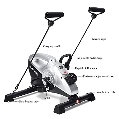 Feature: 【Multi-use Fitness Machine with Resistance Rope】—This under desk bike is very easy to use, which has 3 ways to exercise. The mini exercise bike with multi-use pedals, alternate use of hands and feet, can help us achieve the purpose of exercise. 【Non-slip Foot Pedal & Anti-slip Bottom】 –The foot pedal of the stationary bike adopts anti-slip technology. The foot-covered pedal increases the friction between the foot and the pedal, and the bottom is designed with a protective pad to prevent it from moving to slide for safety 【Portable Under Desk Bike】– Handle design, so the mini pedal exercise bike is very easy to carry, and the weight of this product is 18.5 lbs and the size of the exercise bike is 23.6*21.8*12.6 inches, which is relatively light and easy to move 【Different levels of Resistance & Quite Exercise Bike】—The under desk bike with 16 levels of resistance, from light to strong, calibrate the resistance level to fit your diverse needs. The magnetic wheel of the exercise bike provides ultra-quiet operation, making it easy to use in the office or at home without causing a disturbance. Start, step on, and stay fit at any time. 【LCD Monitor】–The arm and foot pedal with digital LCD monitor, which displays time, distance, speed, and calories burned, helping you achieve a reasonable and effective workout, you can also reset by long-press the button.