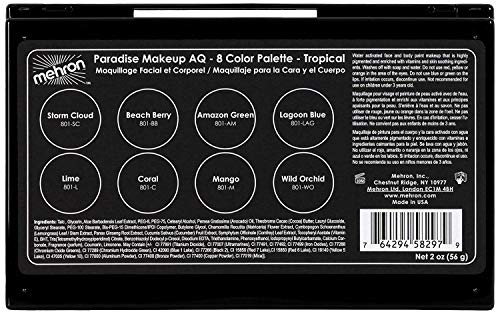 Mehron Makeup Paradise AQ Face & Body Paint 8 Color Palette – Holiday Gift Set – (Tropical)