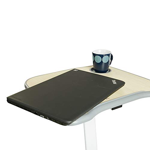 The height of the work tray can be adjusted to the level that is most comfortable for you. It also includes a cup holder so you can securely store a beverage at your fingertips.