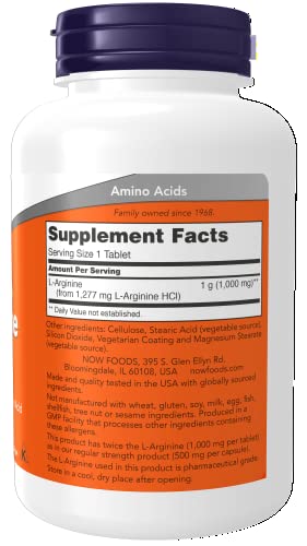 DOUBLE STRENGTH L-ARGININE: NOW offers this non-GMO, double strength L-Arginine supplement in 1,000 mg tablets.