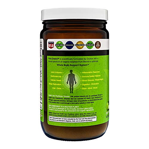 Pure Greens is scientifically formulated by doctors with a broad spectrum of targeted Pure Blends to optimize Whole Body Support System. Includes organic pure superfood blends: Pure Greens Juice Blend; Pure Garden Blend; Pure Fiber, Probiotic & Digestive Blend; Pure Healthy Aging & Brain Support Blend; Pure Detox & Liver Support Blend; Pure Inflammation Response, Immune, Muscle & Joint Support Blend; Pure Glucose Support Blend; and Pure Cardiovascular Suppoort Blend. Contains Organic Plant-based flavors. Contains stevia. Crisp Green Apple flavor. Pure Greens is packaged in eco-friendly, non-toxic glass bottles in order to best preserve the antioxidant rich organic ingredients. Organic gluten-free grass juices, Organic vegetables, Organic fruits, Organic herbs and plants, Organic Flavors (Plant Based) and Organic Stevia.