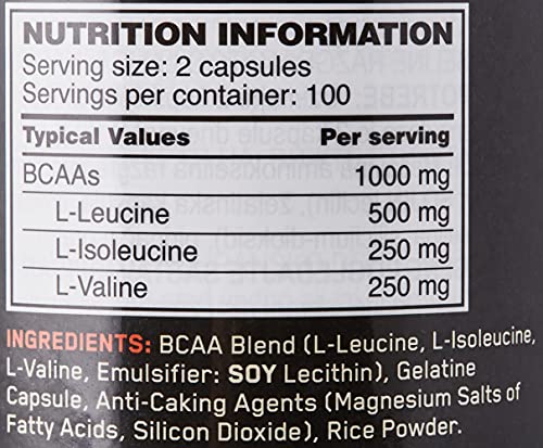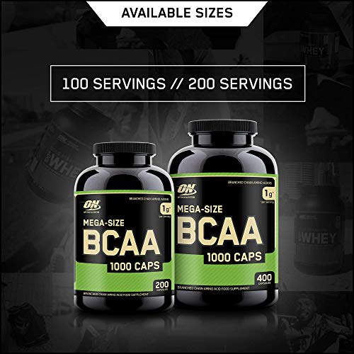 Optimum Nutrition Instantized BCAA Branched Chain Essential Amino Acids Capsules, 1000mg, 200 Count