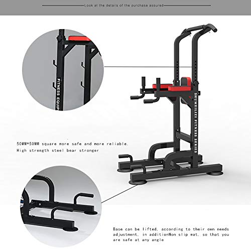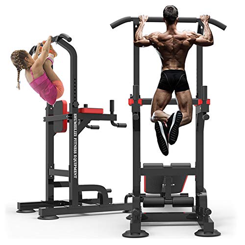 DAILY EXERCISE: With this power tower, you can easily pull up, dips, vertical knee raises, push-ups and reverse grip chin up whenever at home. Note: Please assemble the product from the bottom up. Tighten lock screws after installing all of the parts. Do warm-up exercises before using it