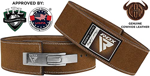 RDX Weight Lifting Belt Powerlifting, Approved By IPL and USPA, 10mm Thick 4″ Leather Lumbar Back Support, Lever Buckle Gym Strength Training Equipment, Bodybuilding Deadlifts Squats Workout Men Women