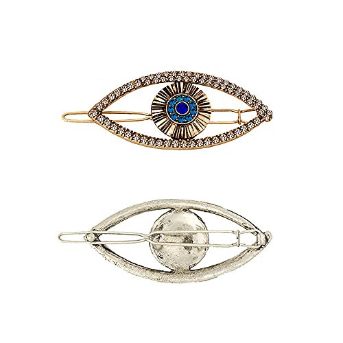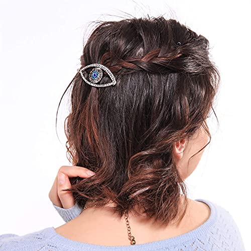 Retzjorv 2 Pcs Turkey Blue Evil Eye Hair Clips Alloy Rhinestone Hair Pins Eye Style Hairpins Hair Barrettes Side Clip…