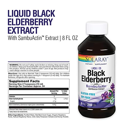 Solaray Liquid Black Elderberry Extract | Delicious, Healthy Immune System & Antioxidant Support | 24 Servings | 8 fl oz