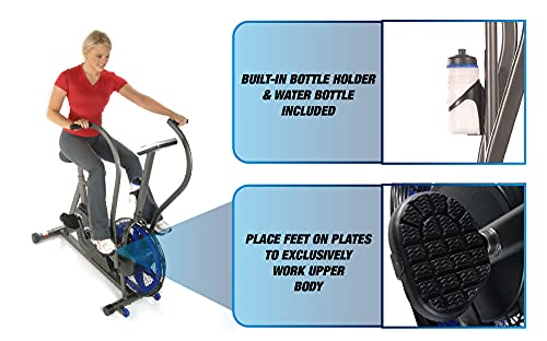 OPTIONAL UPPER BODY WORKOUT: The padded, ergonomic handlebars work the upper body as you pedal. Place your feet on the plates to exclusively work your back, shoulders, chest, arms and core.