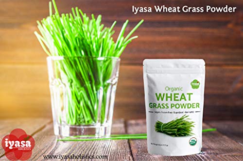 šUSDA ORGANIC, RAW, VEGAN, NON-GMO: Iyasa Organic Wheatgrass Powder is made from whole sprout of Wheatgrass and not a juice powder. It is sourced from NOP(USDA) certified, sustainable farms of India and packaged in FDA registered facility. It is Non-GMO, Vegetarian and Vegan; Dairy, Soy, Corn free
