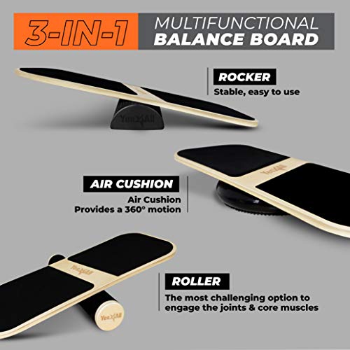 3IN1 KIT FOR HIGH PERFORMANCE FITNESS: Including 1 Balance Board Trainer with 1 Wooden Roller, 1 Air Cushion & 1 Rocker; Special combo is designed to add a whole new dimension to your workout, suitable for all fitness levels; Whether you’re a first time beginner or an experienced athlete, this Balance Board Training System is versatile enough to provide a workout that is not only effective, but fun
