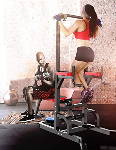 ● Multi-functional: This power tower with bench included: height adjustable pull up bar, multifunction dip station, flat weight bench, push up bar, etc. Suitable for Full-body Workouts, with a variety of stations and positions, you can all-around training abdominal muscles, arm, back, chest, shoulders, and leg muscles.