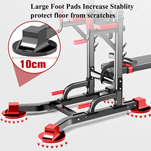 ● Excellent Stability and Safety: This dip bar comes with a heavy-duty steel frame constructed with scratch-resistant coat finish, which is super stable and durable. Extended feet design, which can widen the force area to make your power tower more stable. Vaccum pads will protect your floor, and pull up bar station will stand during the training firmly.