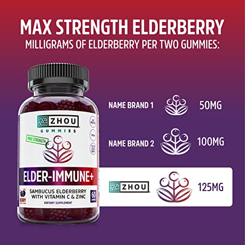 Zhou Nutrition Elder-Mune Sambucus Elderberry Gummies with Zinc and Vitamin C for Adults & Kids (Age 4+) Immune Support…