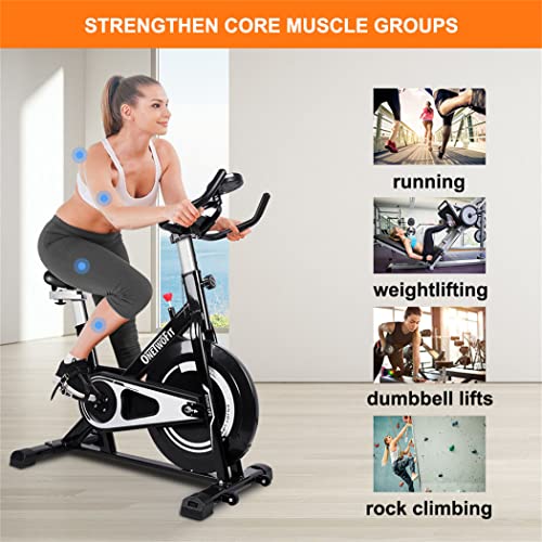 Upgraded Indoor Exercise Bike:Heavy-duty steel frame of the exercise bike ensures stability while cycling. Besides, the powder-coated surface is rustproof and can be used for a long time. This versatile indoor stationary bike is your ideal choice for home cardio workout, and the maximum weight capacity is 150kg.