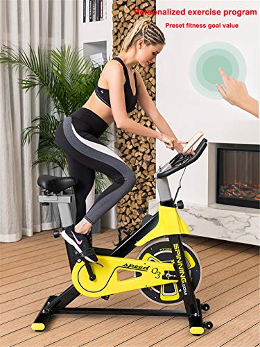 1. This spinning Bike is available in a stylish black and yellow finish. This exercise fitness bike is suitable for home use and once set up can be used whenever you feel the need to exercise. The Spin Bike will give your legs a workout and really improve your general fitness.