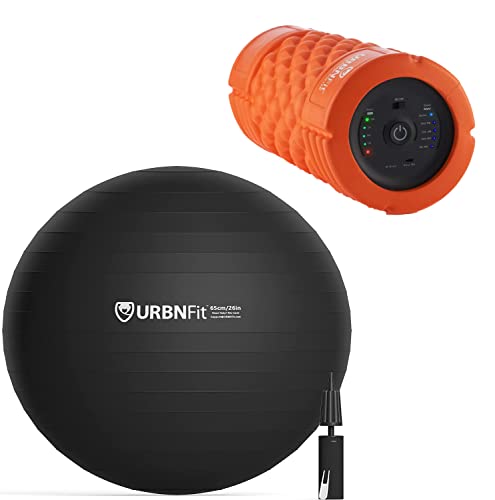 URBNFit Exercise Ball + Vibrating Foam Roller Bundle – Yoga Ball for Workout Pregnancy Stability – AntiBurst Swiss…